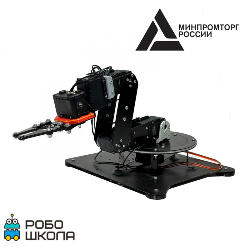 Учебный конструктор для создания манипуляционных устройств. Дополнительно оснащается датчиками и модулями позволяющими расширить область его применения. Комплектация позволяет собирать устройства с угловой кинематикой, плоскопараллельной кинематикой, Delta-кинематикой.